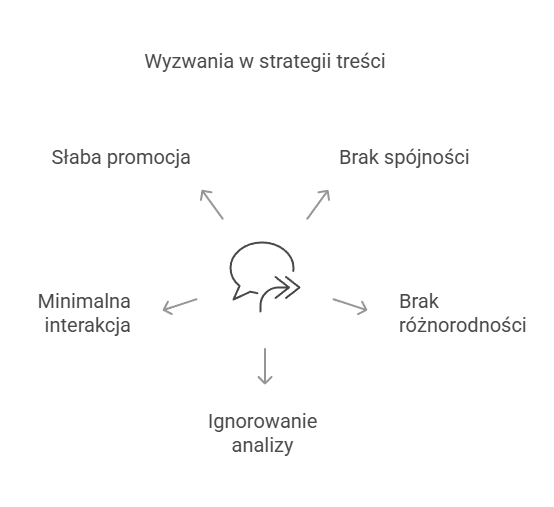 - Brak różnorodności: Publikowanie tylko jednego rodzaju treści (np. tylko artykuły blogowe).