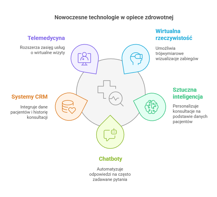 - Wykorzystanie sztucznej inteligencji (AI): Personalizacja konsultacji na podstawie analizy danych pacjenta.