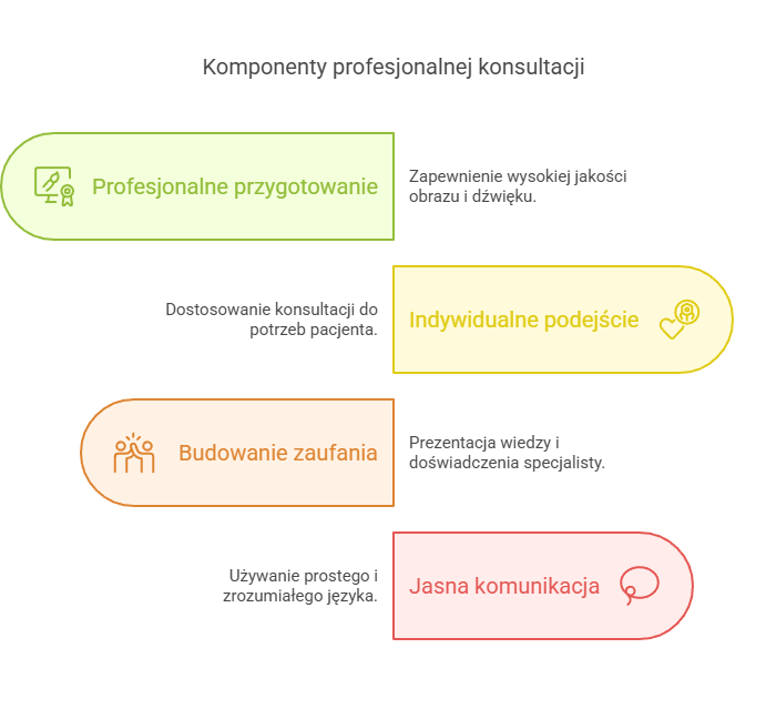 - Problemy techniczne: Niska jakość obrazu i dźwięku może zniechęcić pacjentów.